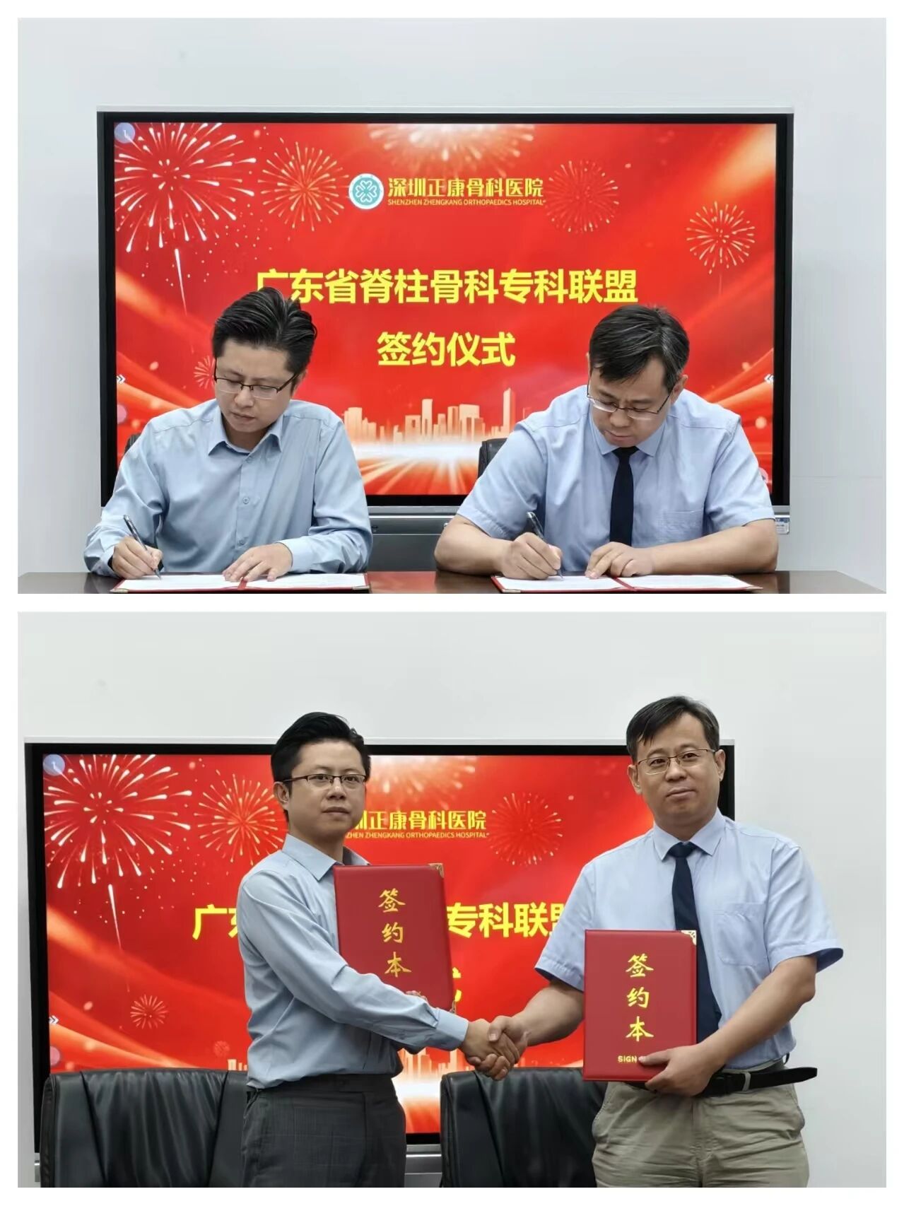 随后,在与会人员的共同见证下,深圳市正康骨科医院与广州医科大学附属中医院脊柱微创中心团队正式签署了骨科专科联盟协议。这标志着双方在骨科领域的合作迈出了坚实的一步,开启了两院携手发展、共同进步的新篇章。