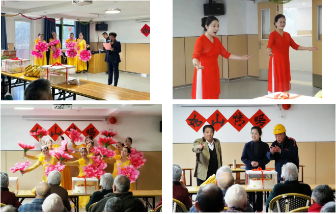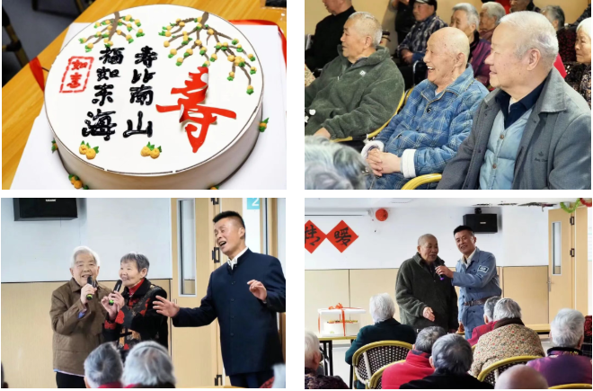 康养中心还为爷爷奶奶准备了无糖的蛋糕、水果及适宜老人口味的零食等,演出的工作人员邀请在场的爷爷奶奶一起唱歌、聊天。长者们坐在一起,一边品尝着美味,一边闲话家常,聊聊演出,整个现场充满欢声笑语,构成了节日里最动人的画面。