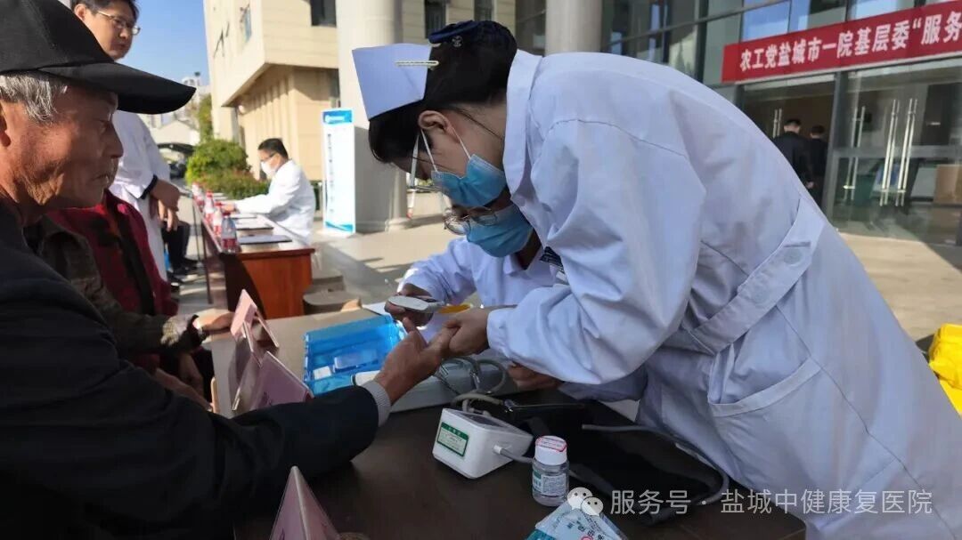秋意渐浓,关爱不减。11月12日,盐城中健康复医院携农工党盐城市一院基层委“服务百姓健康行动”大型义诊活动,在盐都区龙冈卫生院前的健康广场举行,这也是盐城中健康复医院再次为广大市民送上的一场有深度且有温度的社会公益活动。来自盐城市人民第一医院多个科室的专家齐聚一堂,为市民提供免费诊疗、健康咨询和专科服务。此次活动是盐城市中健康复医院持续落实“治疗有深度,服务有温度”的重要组成部分,展现了医院将优质医疗资源下沉到群众身边的坚定承诺。