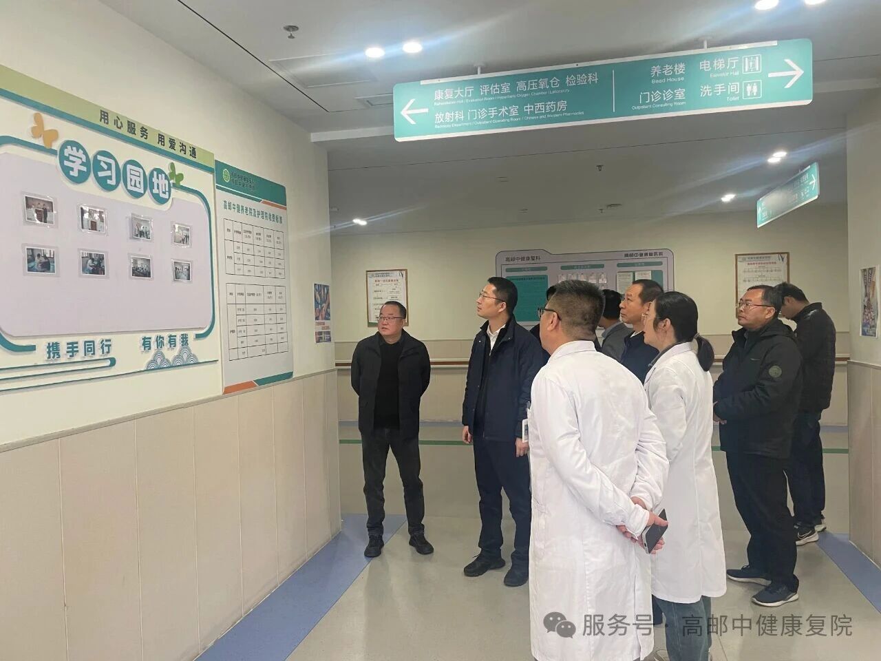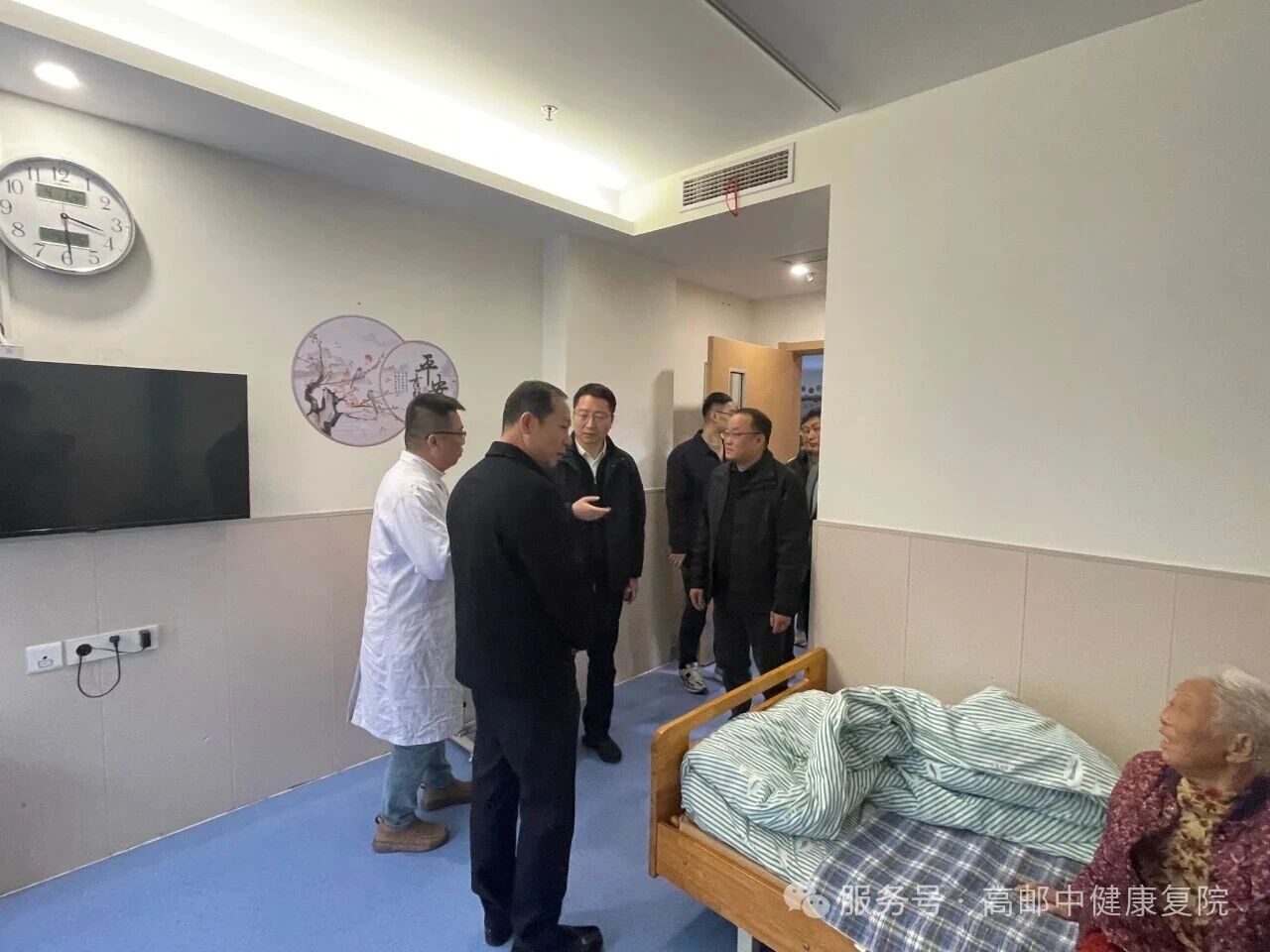 2025年12月1日下午,高邮市委常委、市纪委书记、市监委主任曾俊一行莅临我院,对我院康养中心、康复医院、护理院及养老院进行专项视察,并亲切慰问在院老人。医院负责人胡刚总经理全程陪同接待,并就机构运营与服务情况作了详细汇报。
